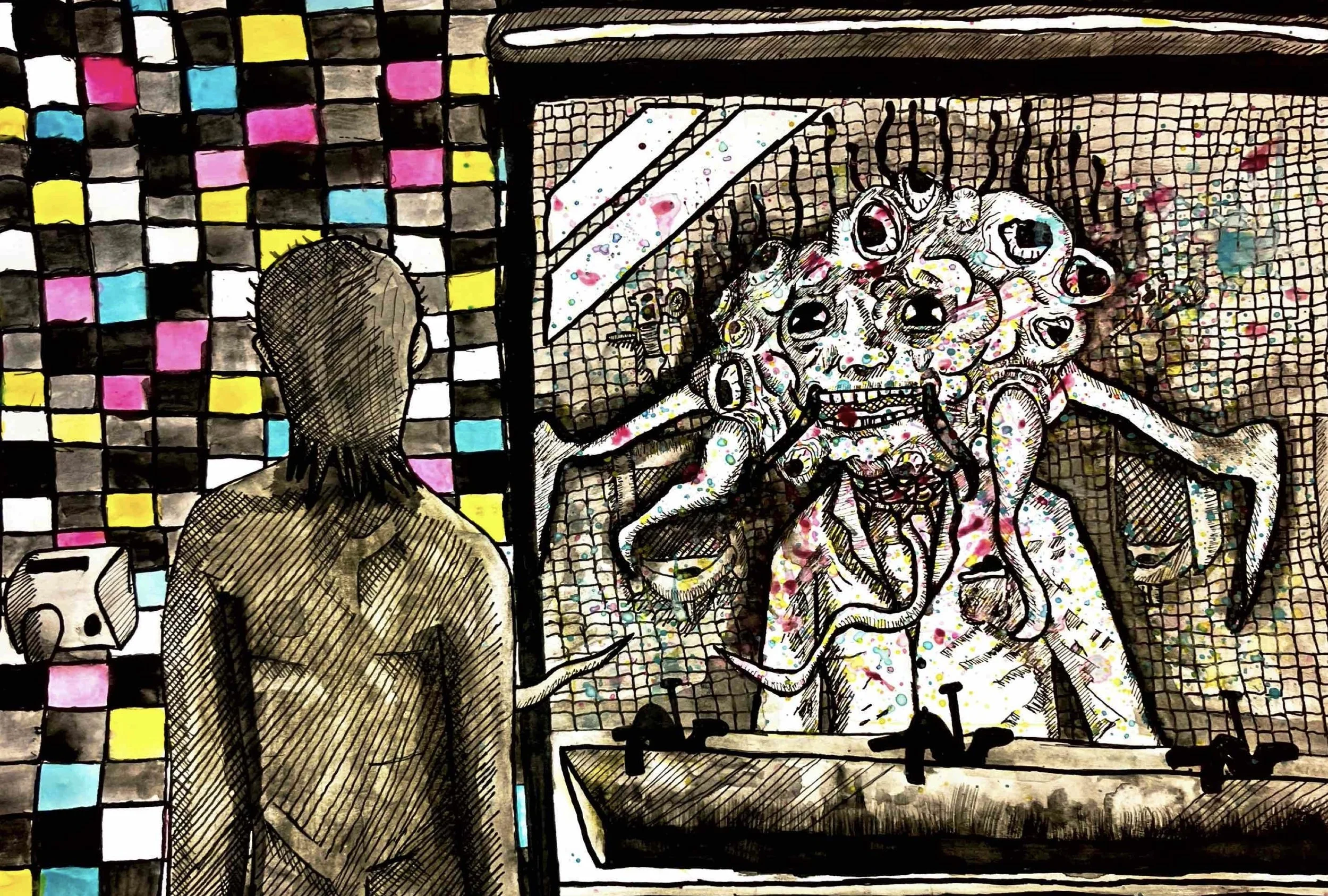 -A hastily done ink drawing meant to represent the quick emotional changes and perceived tragedy of a modern teenagers mentality.