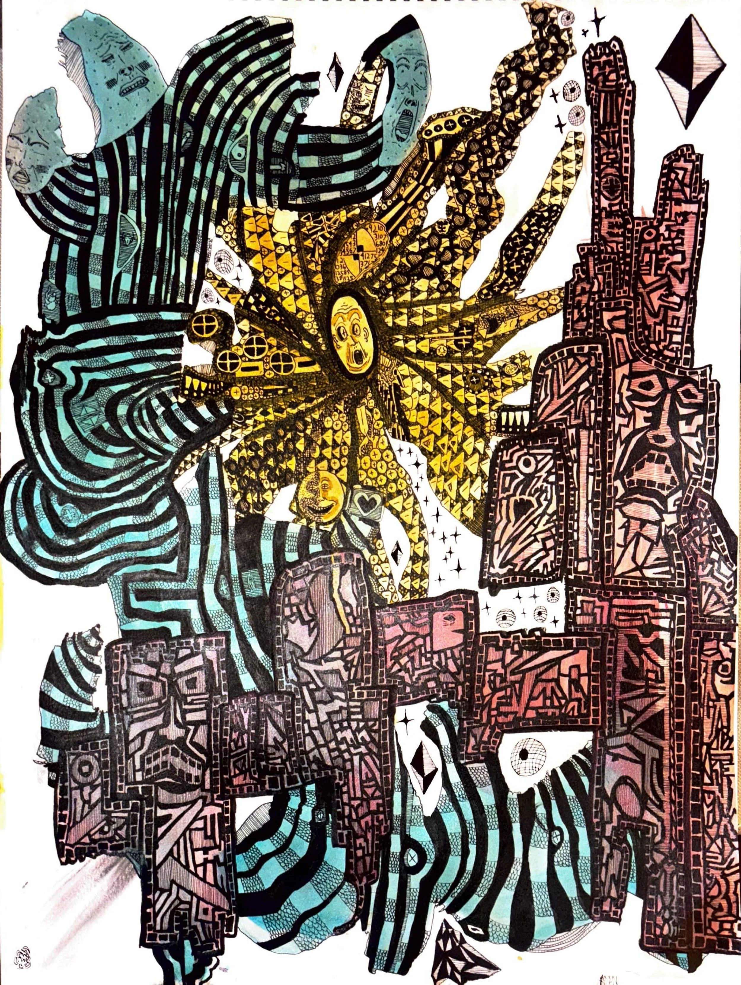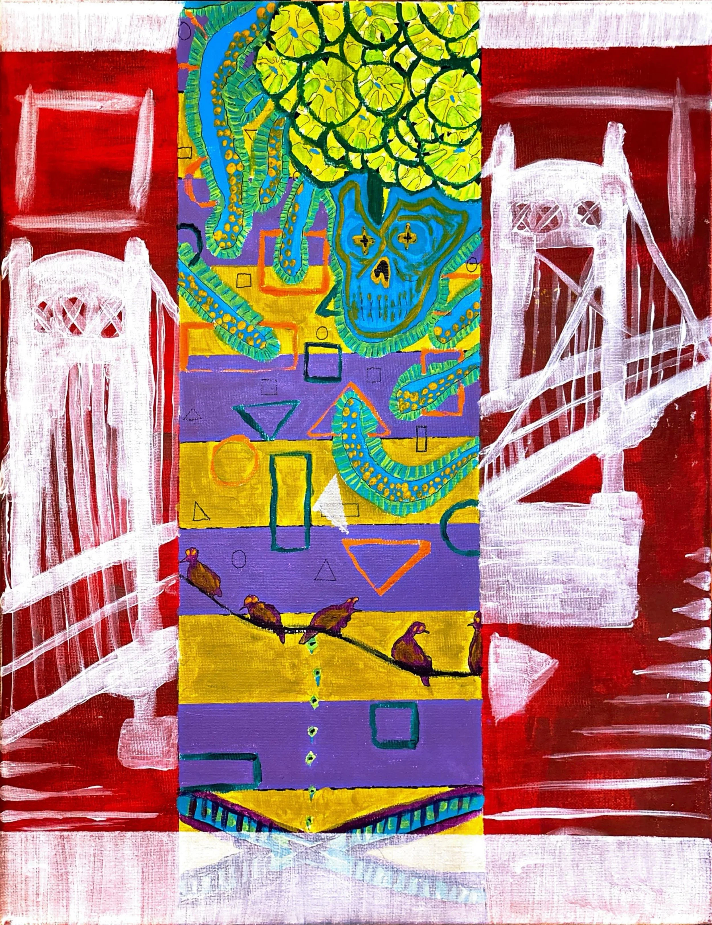-I had a long Uber ride home from a show where the driver explained to me that her husband had died a few weeks prior. The spread of K2 in Pittsburgh took his life, as while high on spice, he fell from one of the bridges in the city. This piece represents the lives taken by addiction in Pittsburgh and how the colors of childhood are quickly overtaken by the cold arms of adulthood.