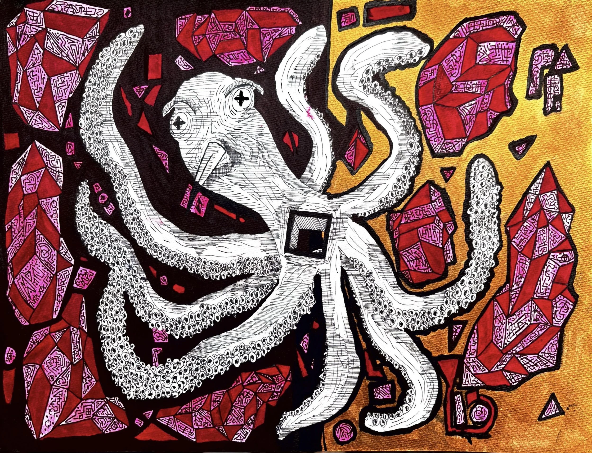 A mythical octopus deep below the sea that emanates an otherworldliness.
